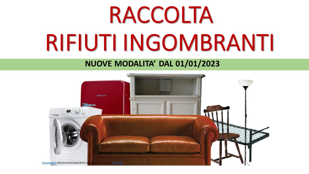 Si avvisa la Cittadinanza che a far data dal 1 gennaio 2023, il sistema di raccolta degli ingombranti subirà alcune modifiche (a seguito delle determinazioni del Consorzio di Bacino).