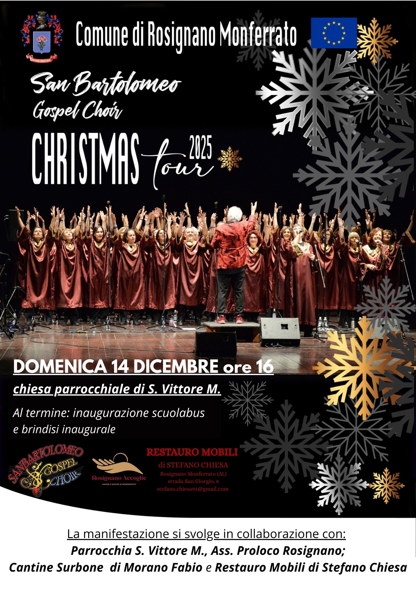 Domenica 14 dicembre la chiesa parrocchiale di Rosignano Monferrato ospita le sonorità coinvolgenti del Concerto Gospel di Natale alle ore 16 del San Bartolomeo Gospel Choir.