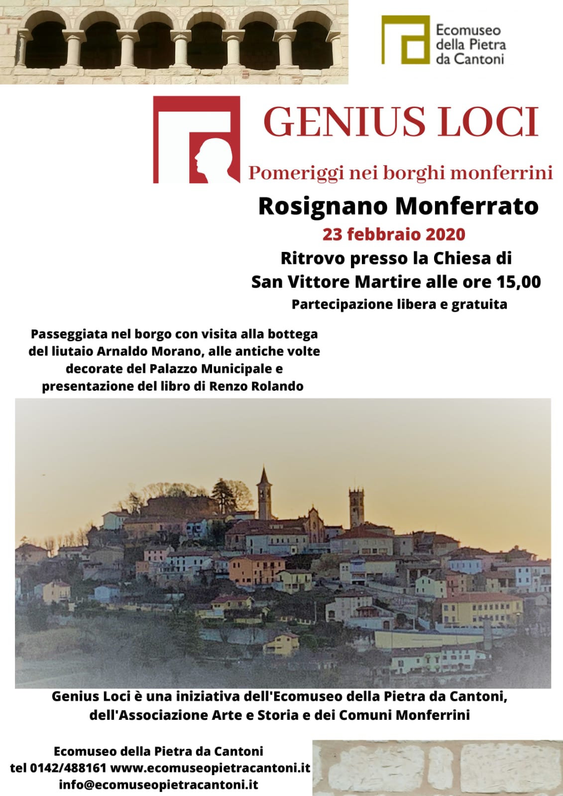 Al via, domenica 23 febbraio a Rosignano Monferrato, il primo dei quattro appuntamenti di “Genius Loci – Pomeriggi nei borghi monferrini”, la rassegna che propone visite guidate nei paesi monferrini, coinvolgendo luoghi e personaggi, soggetti e interpreti delle diverse storie e identità.