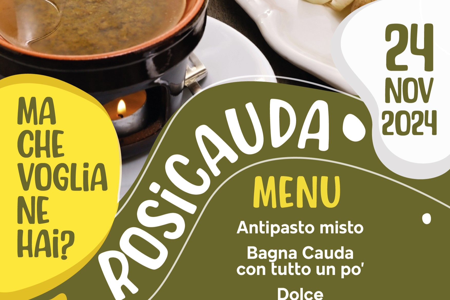 Un appuntamento da non perdere per gli amanti della bagna cauda. La ProLoco di Rosignano Monferrato per il pranzo di domenica 24 novembre propone "Rosicauda", dove protagonista è il piatto tradizionale nei mesi autunnali ed invernali dell'enogastronomia piemontese. La bagna cauda è un intingolo a base di acciughe, aglio e olio, servita nei tipici fujot che la mantengono calda mentre viene gustata e consumata con il pinzimonio prevalentemente di verdure di stagione.
