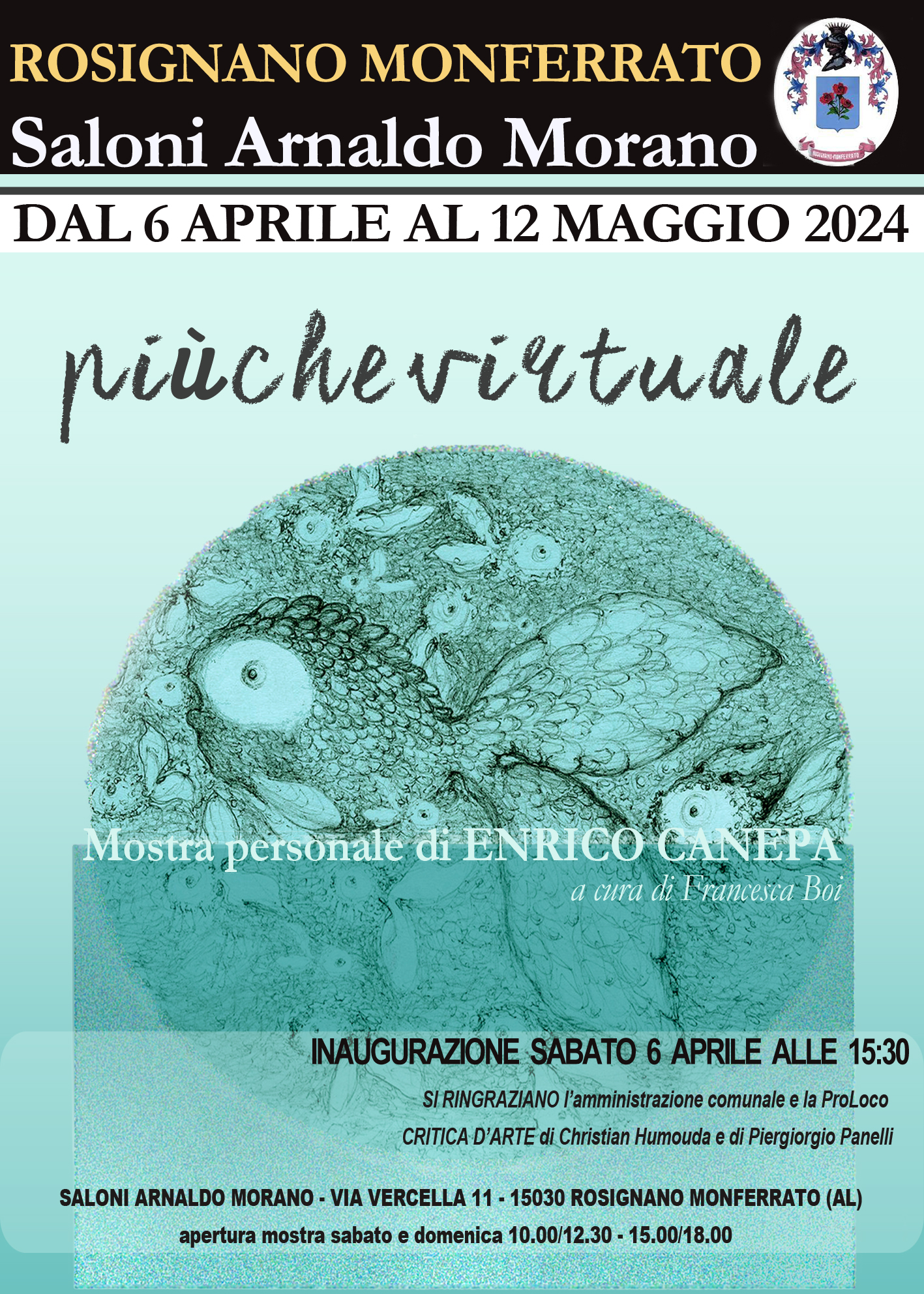 La mostra, allestita presso i Saloni Morano, è visitabile fino al 12 maggio, sabato e domenica con orario 10-12.30 e 15-18. Per maggiori informazioni: Info Point Turistico tel. 377 169 3394.