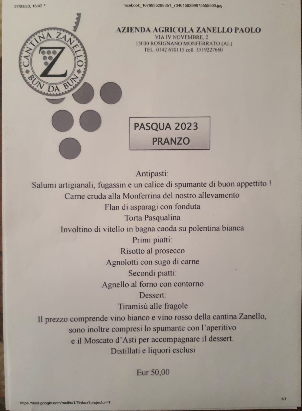 - Agriturismo Zanello - Menù pranzo di Pasqua[.jpg 115,81 Kb - 31/03/2023]