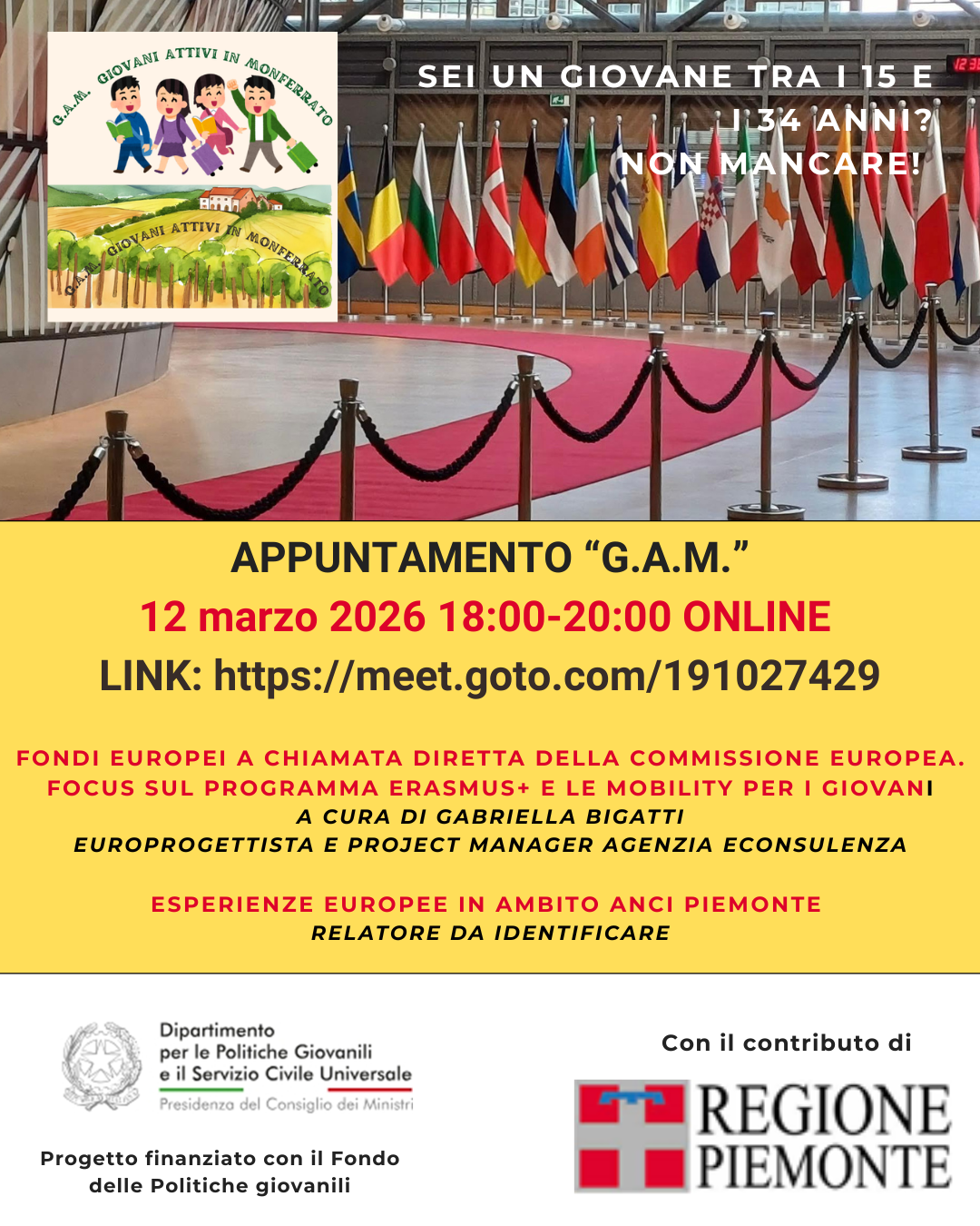 Appuntamento "G.A.M.": 12 marzo 2026 18:00 - 20:00 ONLINE