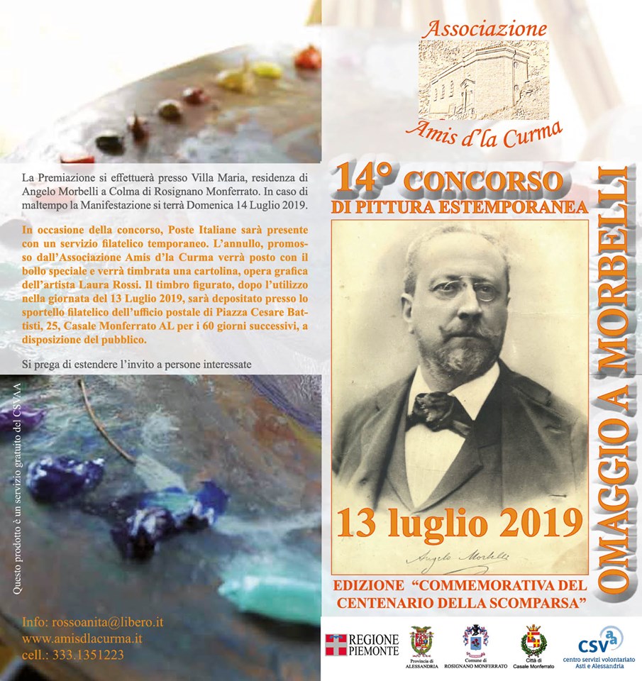 DALLE 15 ALLE 19 A VILLA MARIA APERTURA UFFICIO POSTALE PER ANNULLO FILATELICO “CENTENARIO DELLA MORTE DI ANGELO MORBELLI” SU SPECIALE CARTOLINA, OPERA GRAFICA DELL’ARTISTA LAURA ROSSI.