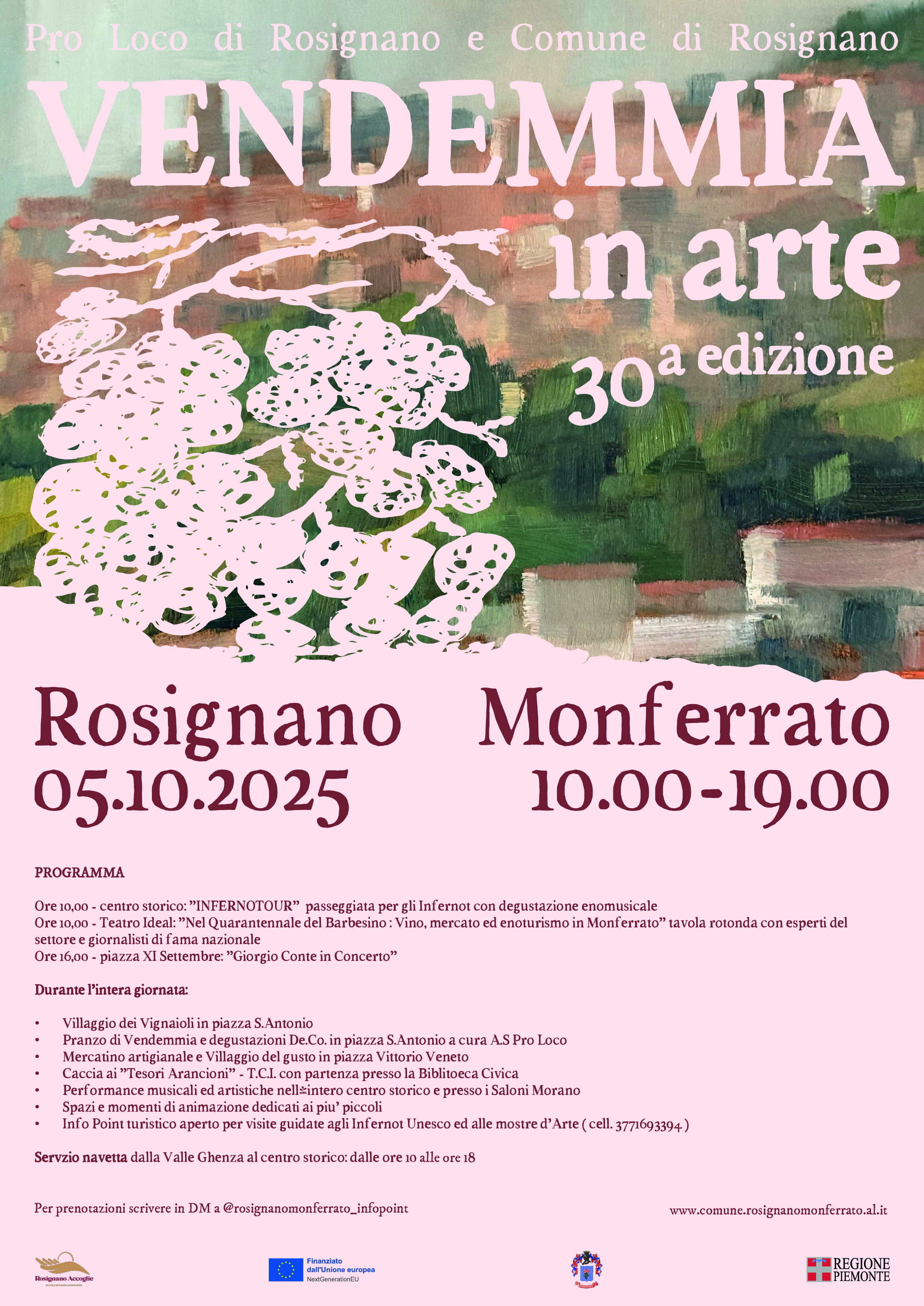 Per l’edizione 2025 di Vendemmia in Arte il Comune di Rosignano Monferrato ha aderito anche al progetto “Fieramente in Piemonte, piccole sagre grandi prodotti”, a cura di Regione Piemonte - Assessorato Agricoltura e cibo e Visit Piemonte.