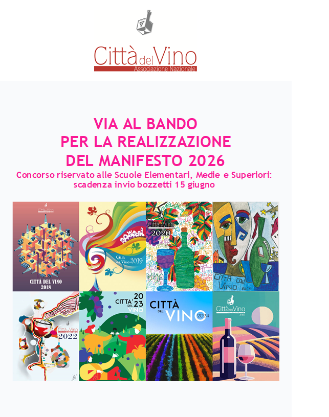 Sono aperte le iscrizioni al Bando per la realizzazione del manifesto che rappresenterà l’Associazione Nazionale Città del Vino per l’anno 2026.