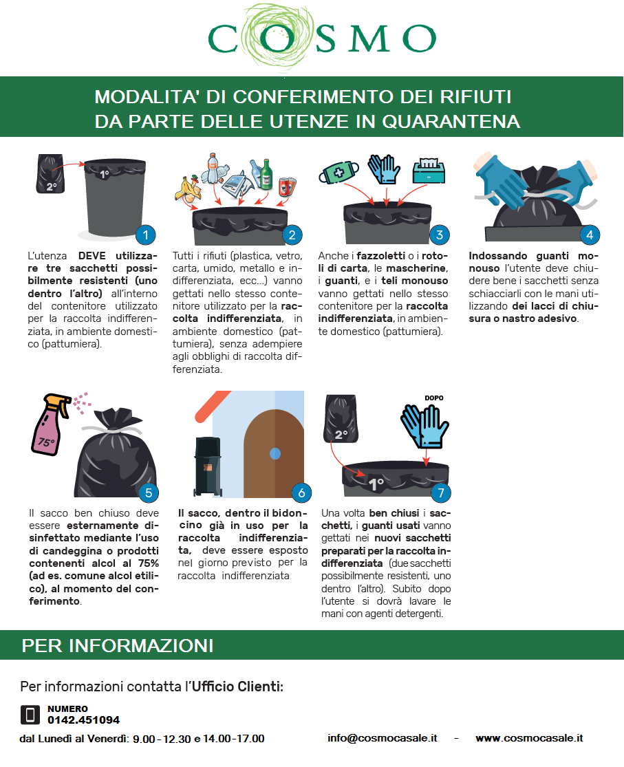 Modalità di smaltimento rifiuti urbani per persone in quarantena o positive al COVID-19.